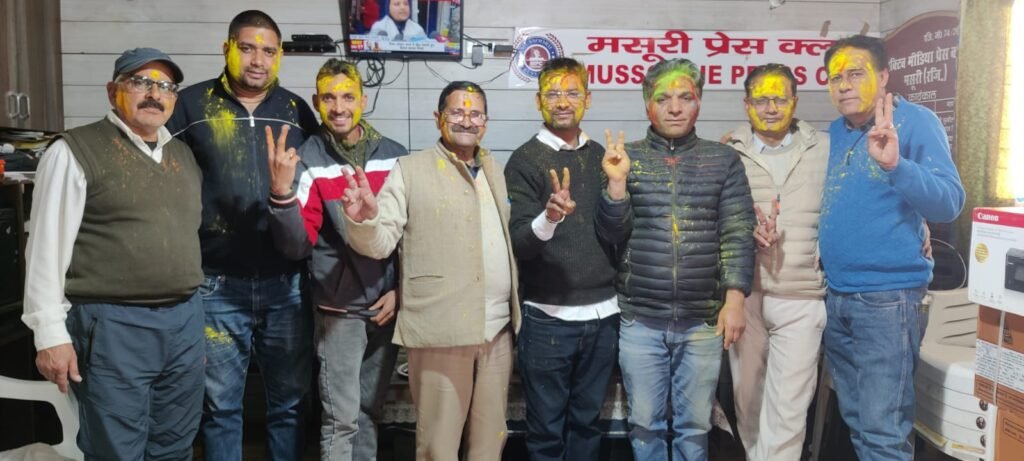 मसूरी। श्रमजीवी पत्रकार यूनियन मसूरी शाखा ने होली मिलन समारोह का आयोजन किया। इस मौके पर सदस्यों ने जमकर एक दूसरे को गुलाल लगा कर होली की शुभकामनाएं दी।