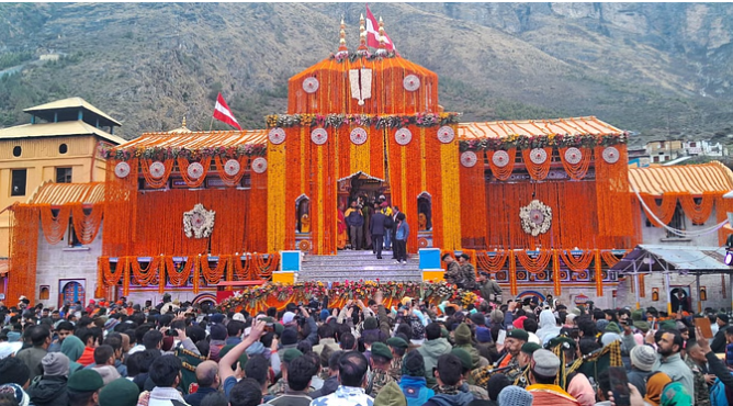 40 कुंतल गेंदे के फूलों से सजाया गया बदरीनाथ मंदिर